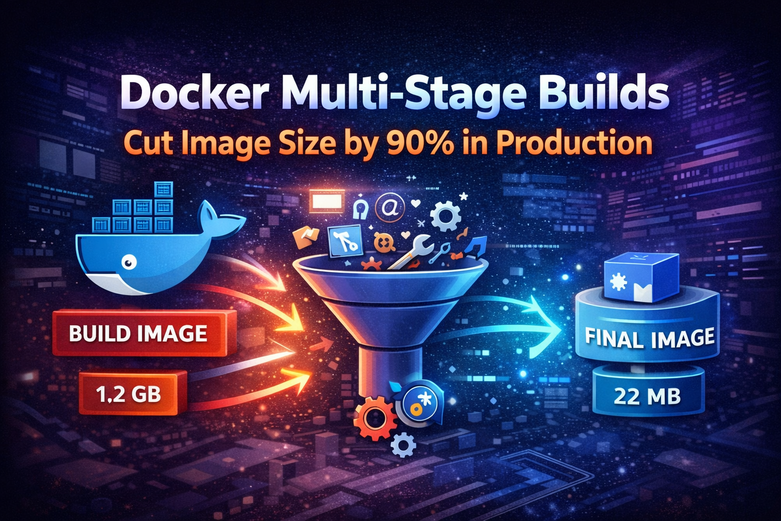 Learn how Docker multi-stage builds dramatically reduce container image sizes, improve security, and speed up deployments. Real-world examples with Node.js, Go, and Python applications.