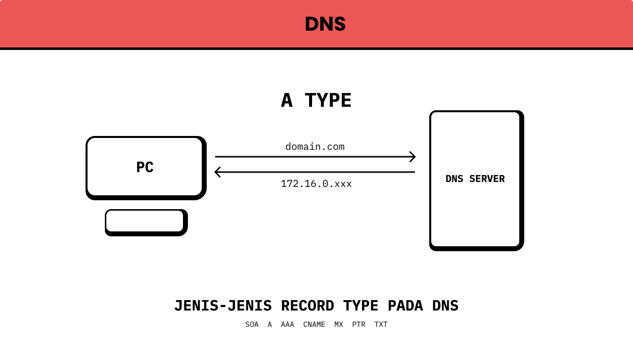 A Record atau Address Record, berfungsi untuk menyimpan informasi soal hostname, time to live (TTL) dan IPv4 Address.