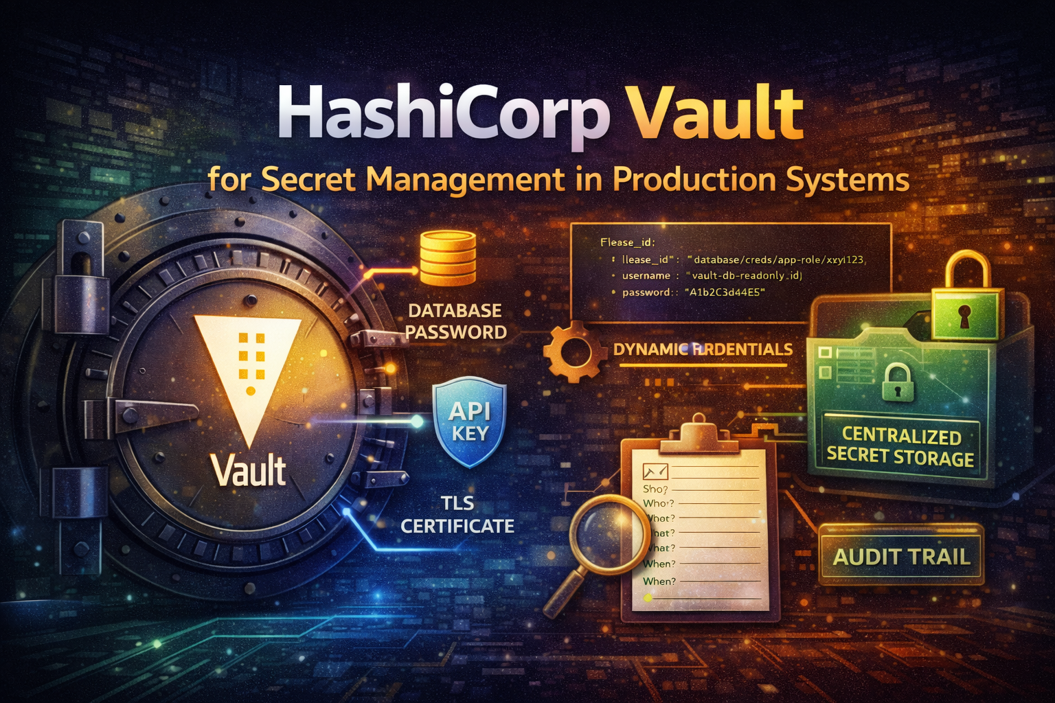 Pelajari cara mengimplementasikan HashiCorp Vault untuk centralized secret management, dynamic credential, dan audit trail dalam environment produksi. Panduan praktis untuk DevOps dan backend engineer.
